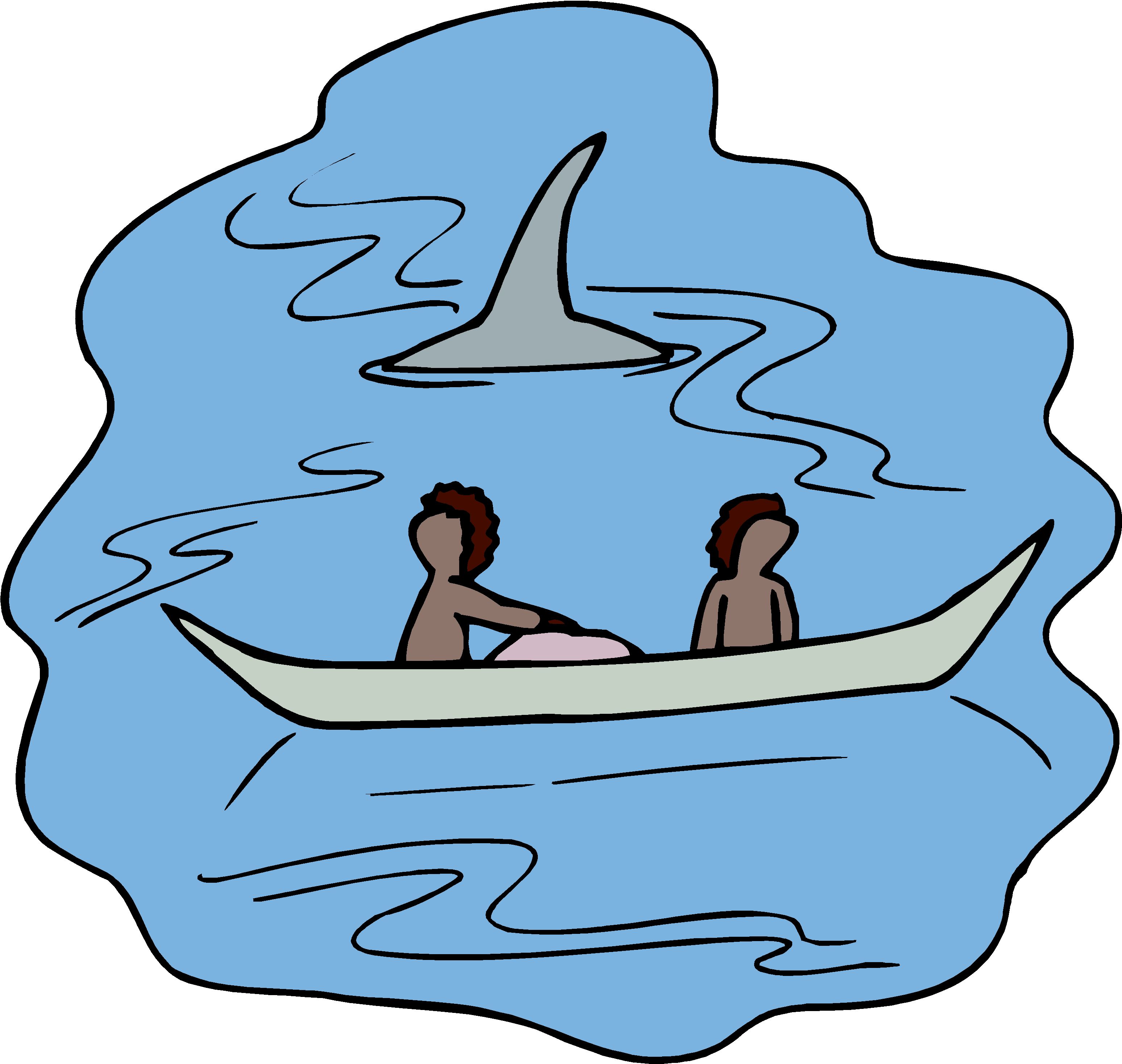 Clipart · People · Shark Circling Canoe