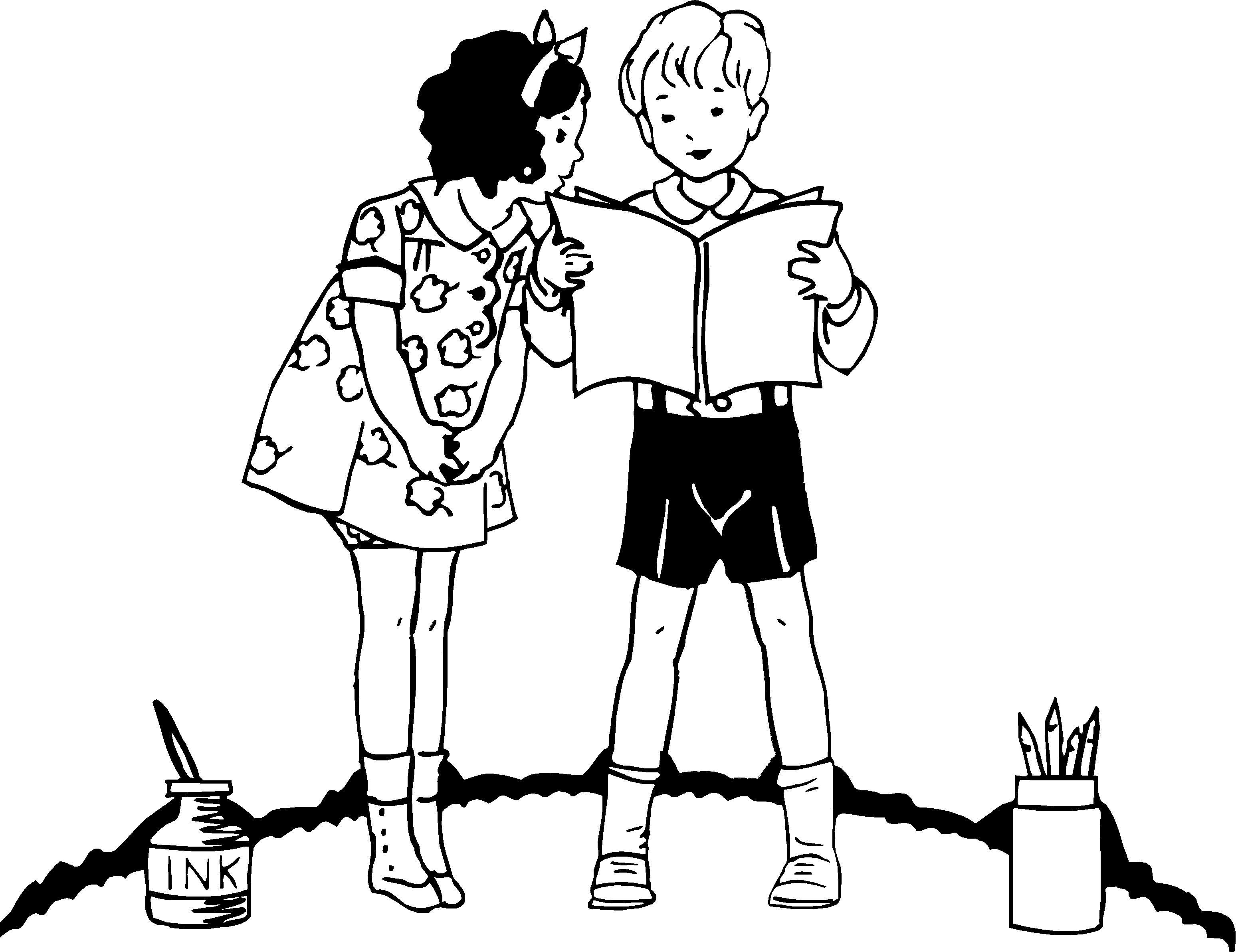 Clipart · Antique Style · People, Children Reading