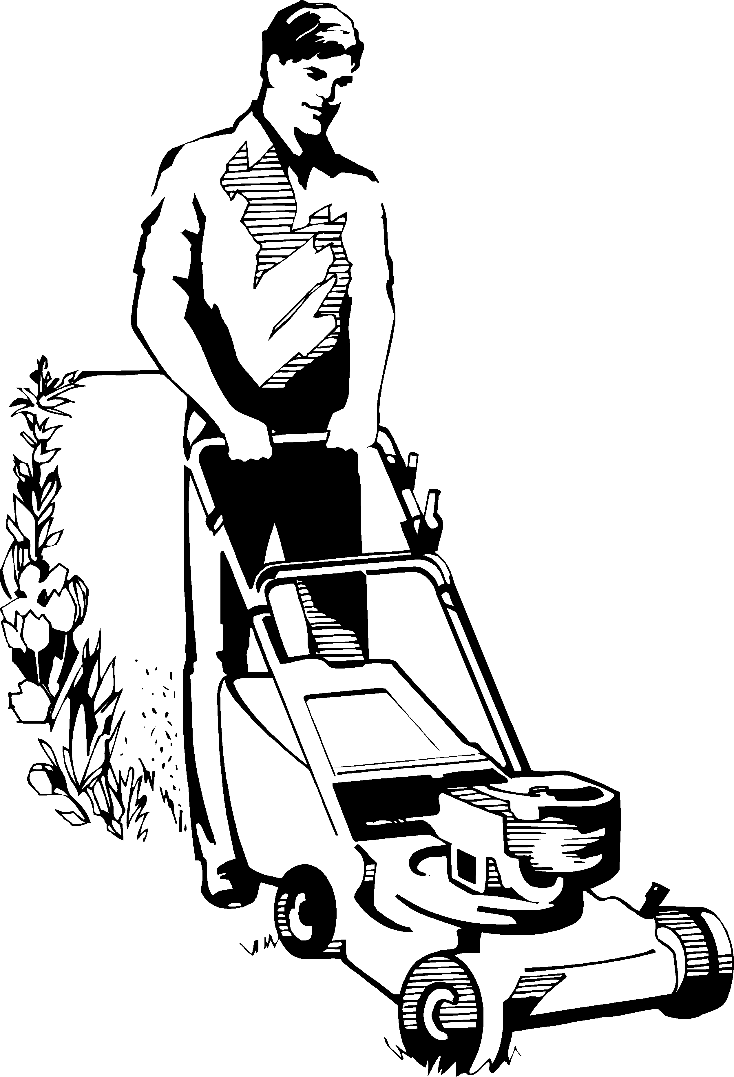 Clipart · Gardening · Man with Lawnmower 1