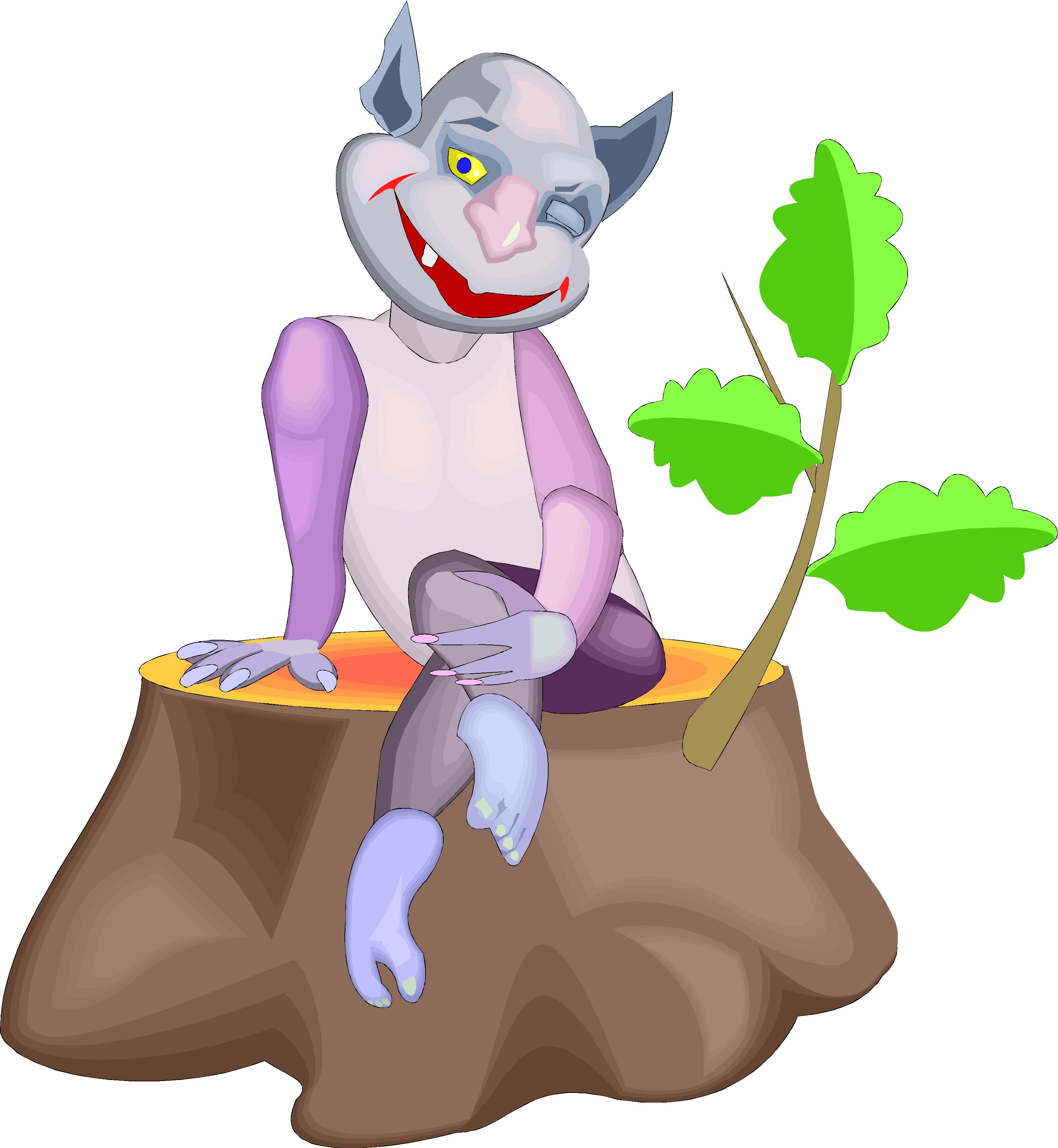 Clipart · Fantasy & Medieval · Goblin on Tree Stump